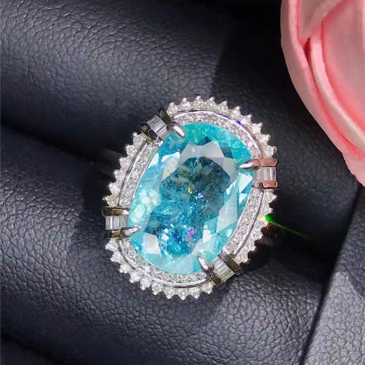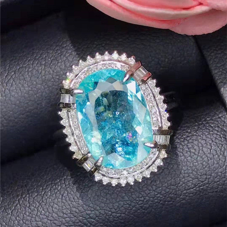 Natural Paraiba Tourmaline Ring Precious Women 18k Gold 3.6ct Blue Green