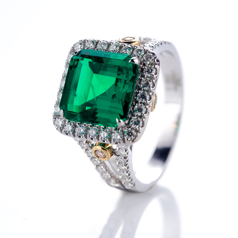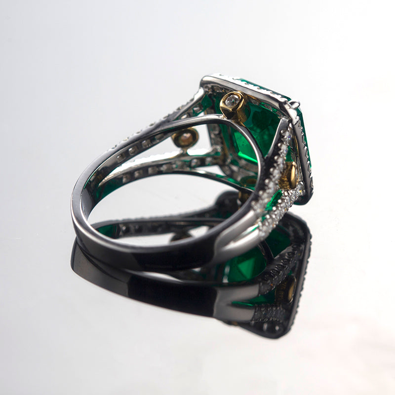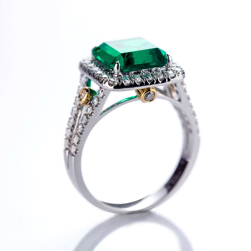 Name: Square 18K/14K White Gold Jewelry Prong setting colombian Emerald ring